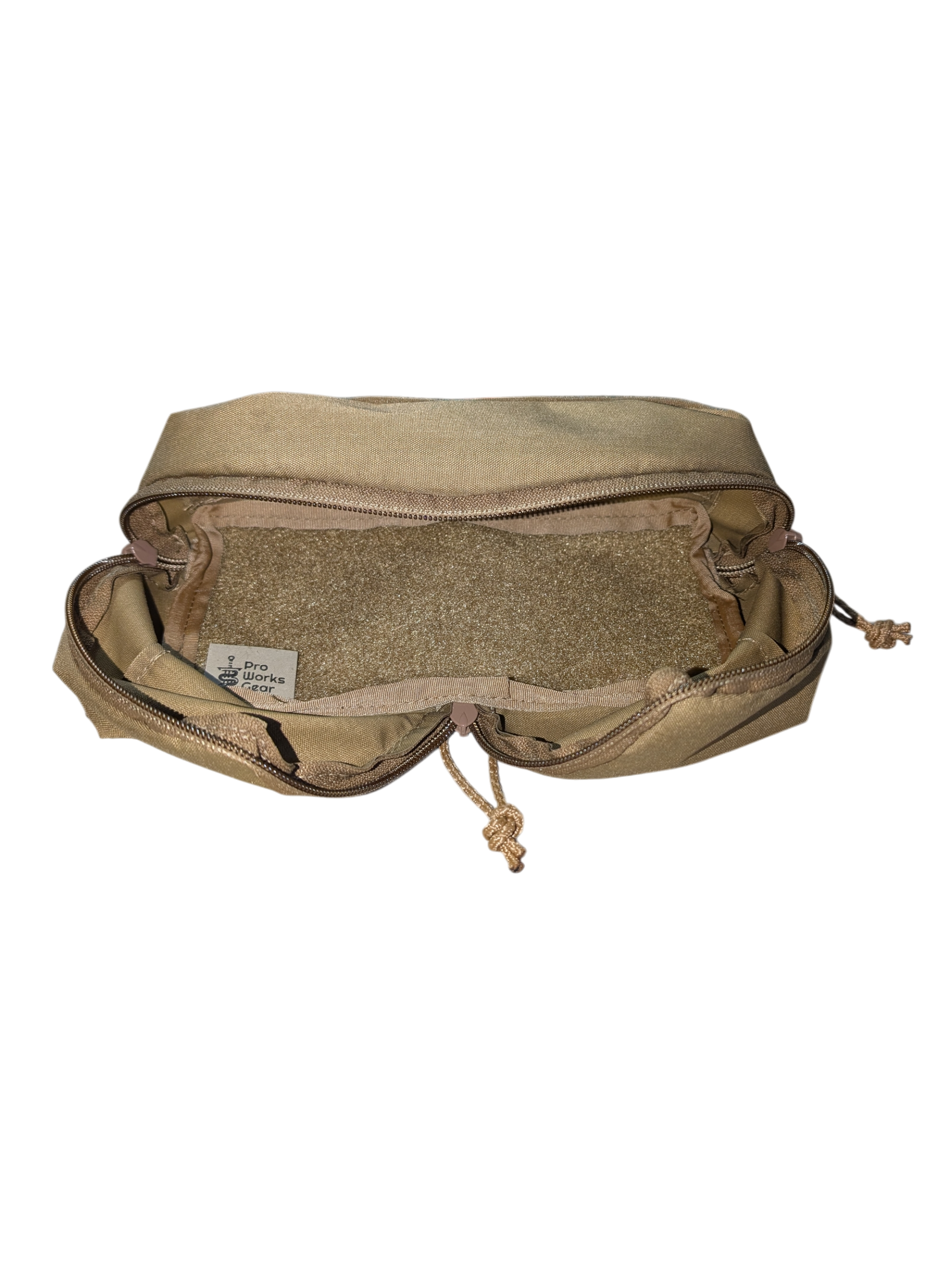 The Triceratops Velcro Insert is a 9" x 4.5" and 3.5" pouch (when fully stocked) that fits in a variety of different medical bags. This insert pouch features three zippers to allow it to either open fully, half way, or just partially if you are doing relocation field work. The inside of the Triceratops Velcro Insert is backed with loop Velcro, to allow for any hook backed inserts to be installed to help with medical organization in the main compartment. The top has a strip of loop Velcro to attach label patches while the back has a band of 2" Velcro to be able to secure to any loop Velcro.